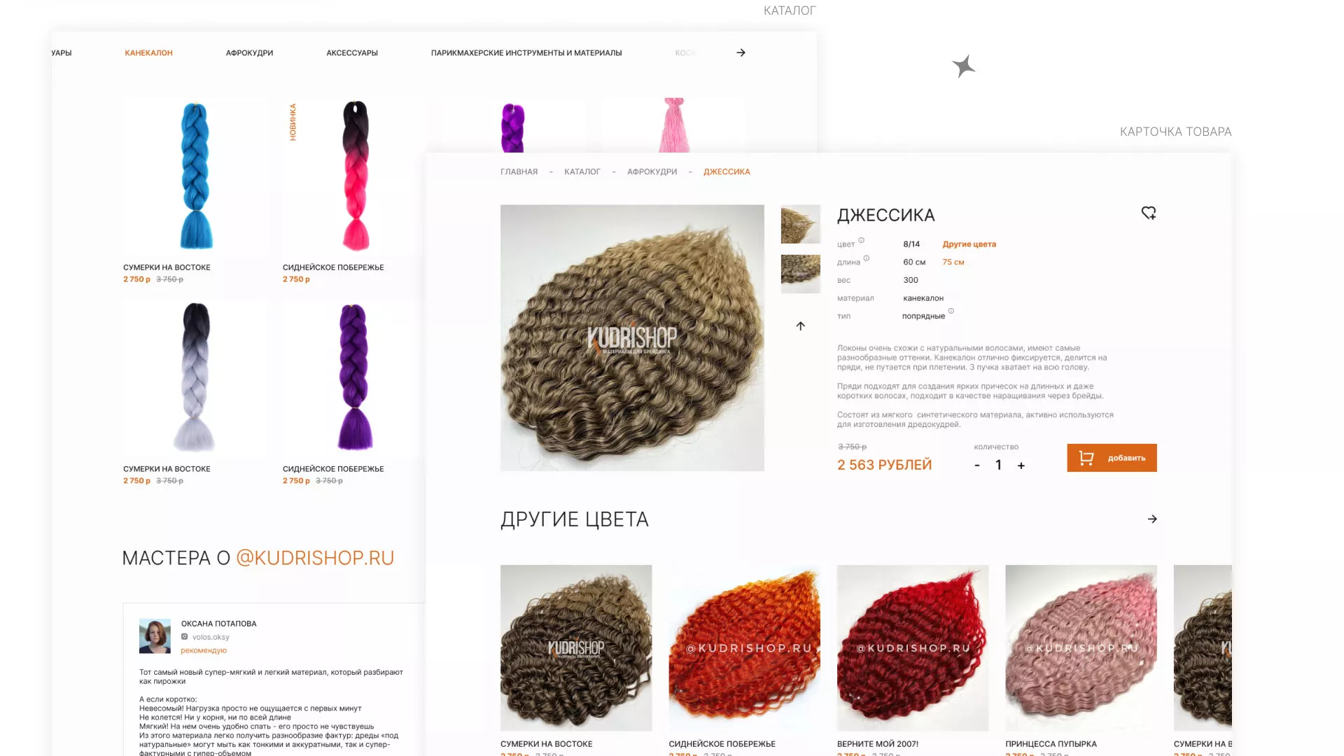Создание интернет-магазина по продаже афрокудрей и других материалов для брендинга в Галиче. Целевая аудитория — молодые и современные девушки, желающие разнообразить свой образ.